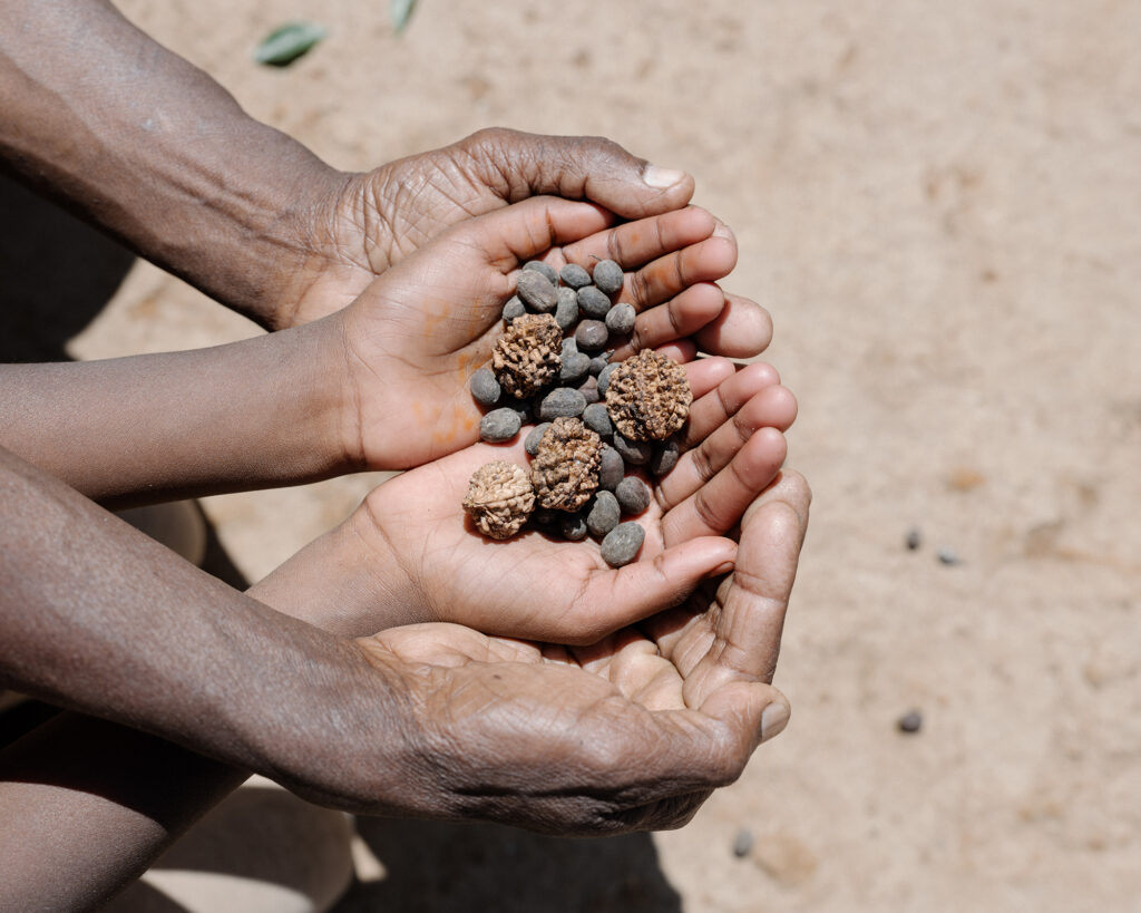 It is not always easy; there has been some suspicion of Ganju as an outsider. Early in her project, Ganju participated in a discussion with Kurumba representatives, and it was decided that the stories she collected would remain behind, among the people. Ganju was given permission to take only one story out into the world. This is the story that she received—a story about how the forests came to be born: