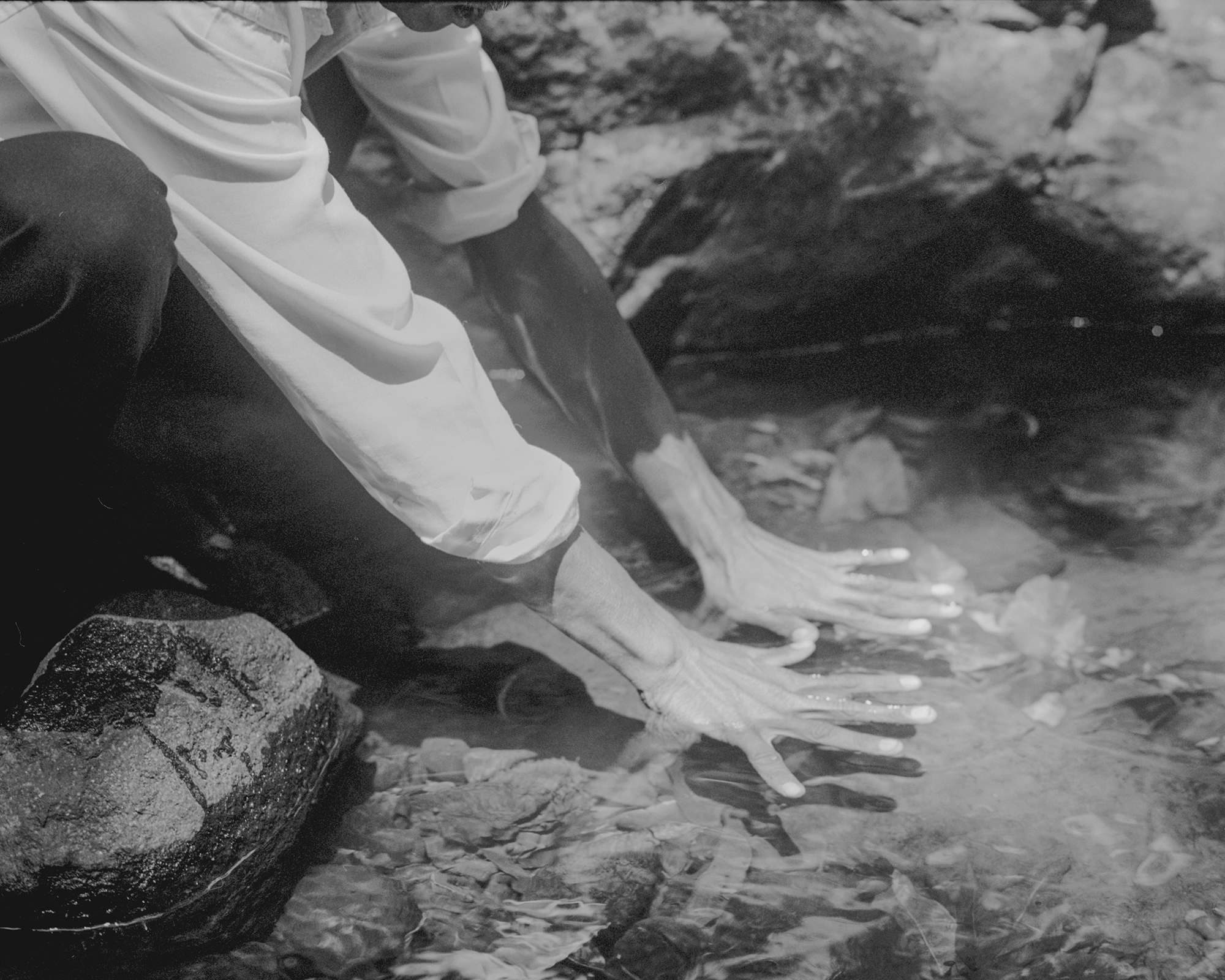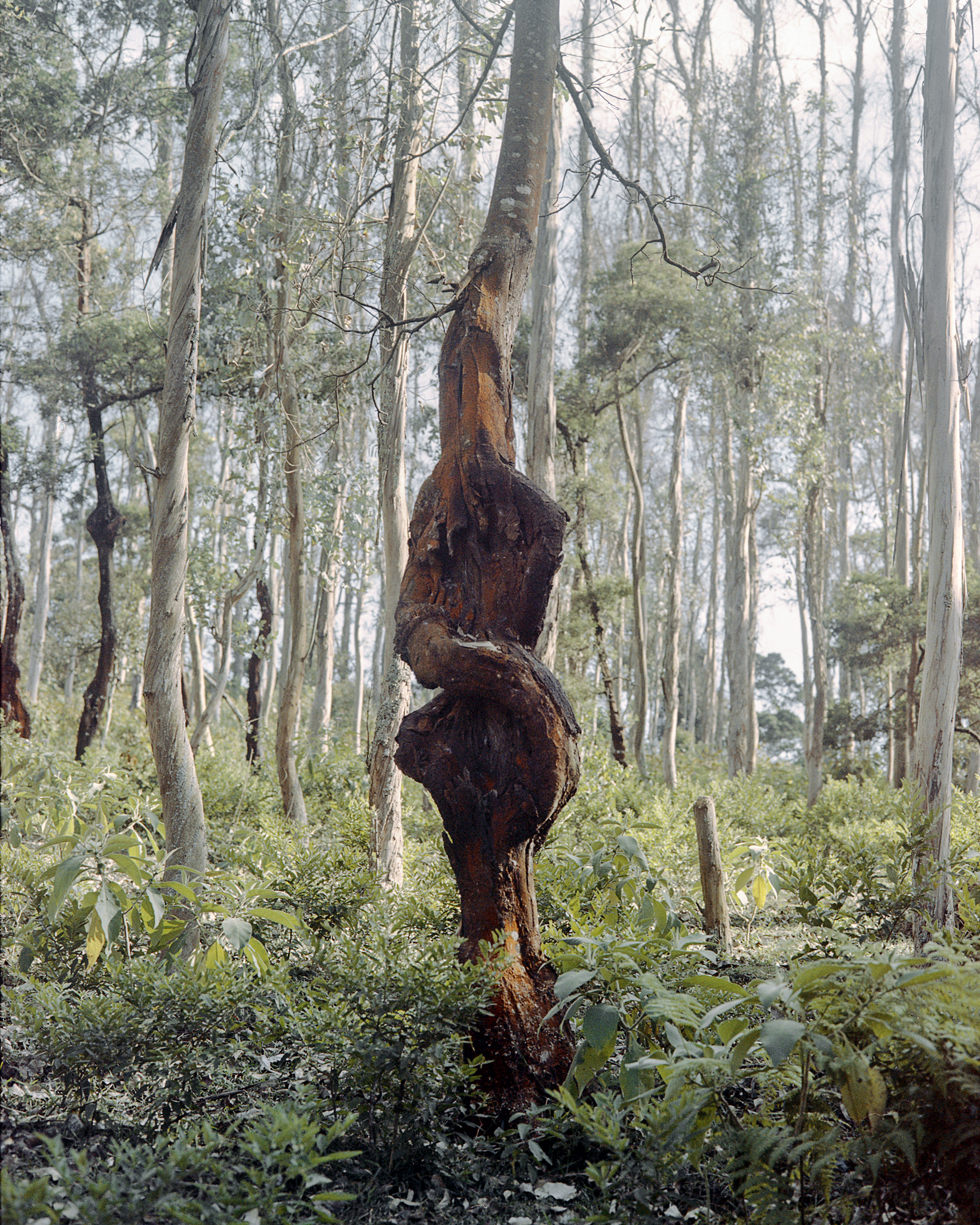 When I first encountered the pictures in Ganju’s series The Pregnant Tree (2016–ongoing), they appeared mysterious. The story that Ganju had heard among the Kurumba offered an explanation. Even now, these images seem to belong to a play; they are staged, a dramatic moment caught in a long performance. However, as I looked at them more, it began to seem that the real silence that the photographs hold within them is the silence of the forest itself. Ganju told me that official records indicate that over the last two hundred years, there has been an 80 percent loss of the Nilgiri grasslands mosaic. This is an ancient, prolific ecosystem with 3,500 flowering plants and 1,500 endemic species; it is recognized by UNESCO as one of the world’s most biodiverse areas. We do not witness in Ganju’s work the depredations carried out in the name of development, or the lives of the people forced out of the forest and now living in urban slums—displaced people, like seeds being roasted in a pan over a fire. This, too, is a part of the silence and mystery of these photographs. They possess the quiet calm of trees in a forest. There is much for the viewer to learn and find moving in that world that is still there.