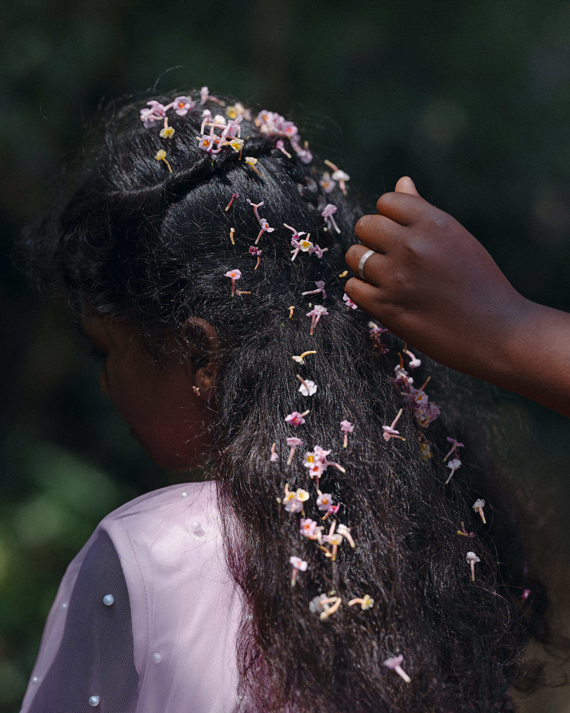 For the past several years, Gayatri Ganju, who was born in 1989 and lives in Bengaluru, India, has traveled south into the dense Nilgiri forest in Tamil Nadu to take pictures among the Kurumba people, one of the several Indigenous groups inhabiting the land. Her companions are two Kurumba men: Murthy, who is in his thirties, and Subbu, in his sixties; both serve as her guides and translators. Ganju needs a translator because she makes images only after close listening. During her treks, she asks the Kurumba to share their stories about the forest, this forest that is sacred to them and the site of their ancestral habitation. These meetings enact a ritual, with everyone sitting in a circle, sharing what they remember, and often what they are forgetting.