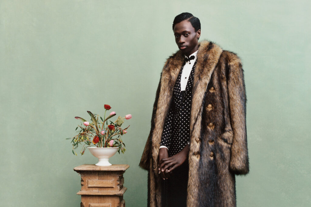 In his crisp, ecstatic photographs, Nuits Balnéaires draws from iconic West African portraiture to depict his circle of friends and family. A relentless respect for fashion, tailoring, jewelry, craft, and aesthetics are, to Nuits Balnéaires, “a way to really reclaim that identity which is strongly African, but also with a lightness that equals an openness to the world, to this contemporary world, to this global world in which we exist today.”