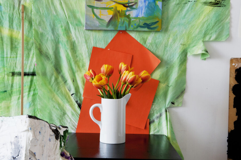 David Gilbert’s colorful studio photographs feel intensely private, like a scrapbook for a tightly knit circle of friends. “The simple stuff that Gilbert photographs isn’t meant to last: drawings and collages on paper that are usually destroyed by the time their image circulates,” writes Evan Moffitt. “Instead, they’re preserved in the paper stock of his photographic prints. In Gilbert’s studio, the lens always comes last, even though it’s the first thing we see.”
