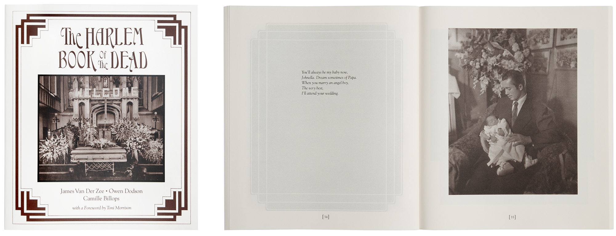 Bradley: I’m thinking about [the Studio Museum in Harlem director] Thelma Golden’s framing of Van Der Zee’s body of work as one that operates as documentation of the Harlem Renaissance but also a “family album” of Harlem as a whole. Van Der Zee talked about his hope for the images in The Harlem Book of The Dead to operate on a formal level that is well beyond documentation and exemplifies his interest and pursuit in having the images go beyond a direct read. The book itself is its own kind of universe and context.