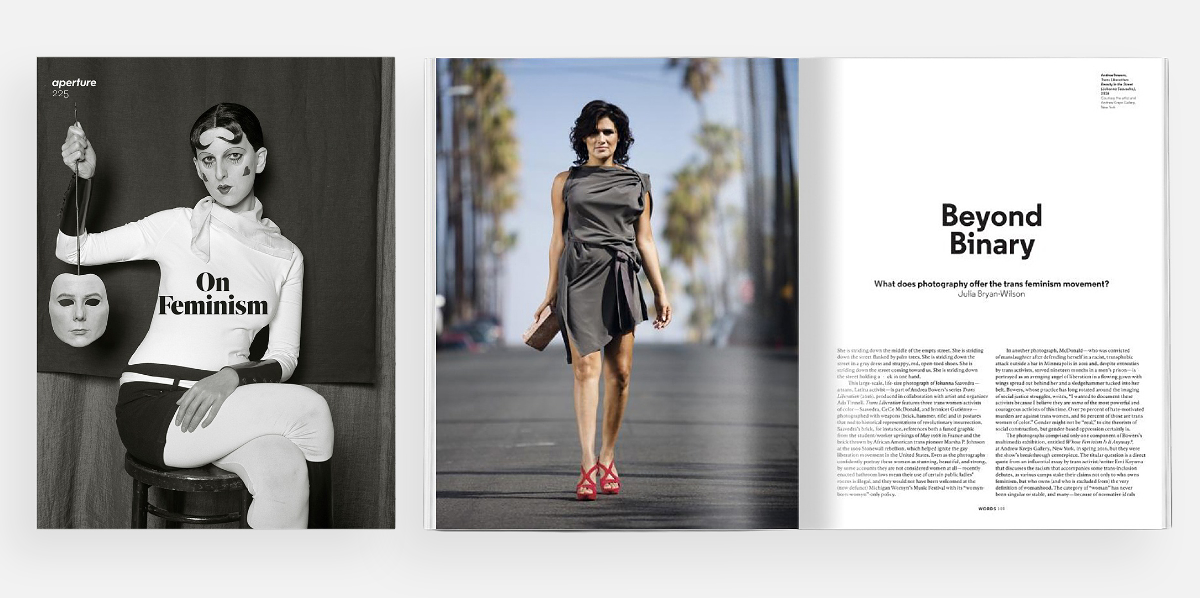 Jenn Hyland: I’m not sure when I first learned about Aperture, but I do remember the first time I absolutely needed to pick up an issue of the magazine—it was the Winter 2016 issue, “On Feminism.” I was curious to see how an organization like Aperture would approach a topic like feminism, and I was so enlivened, and relieved, by the issue’s intersectional approach to the theme.